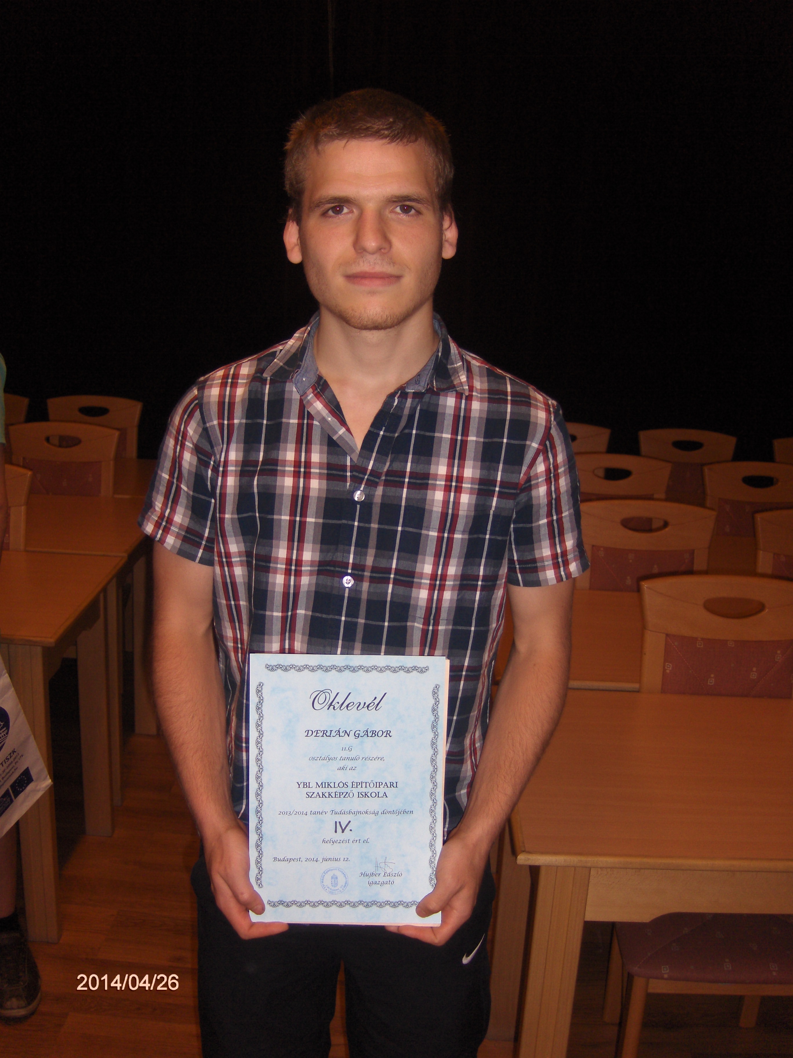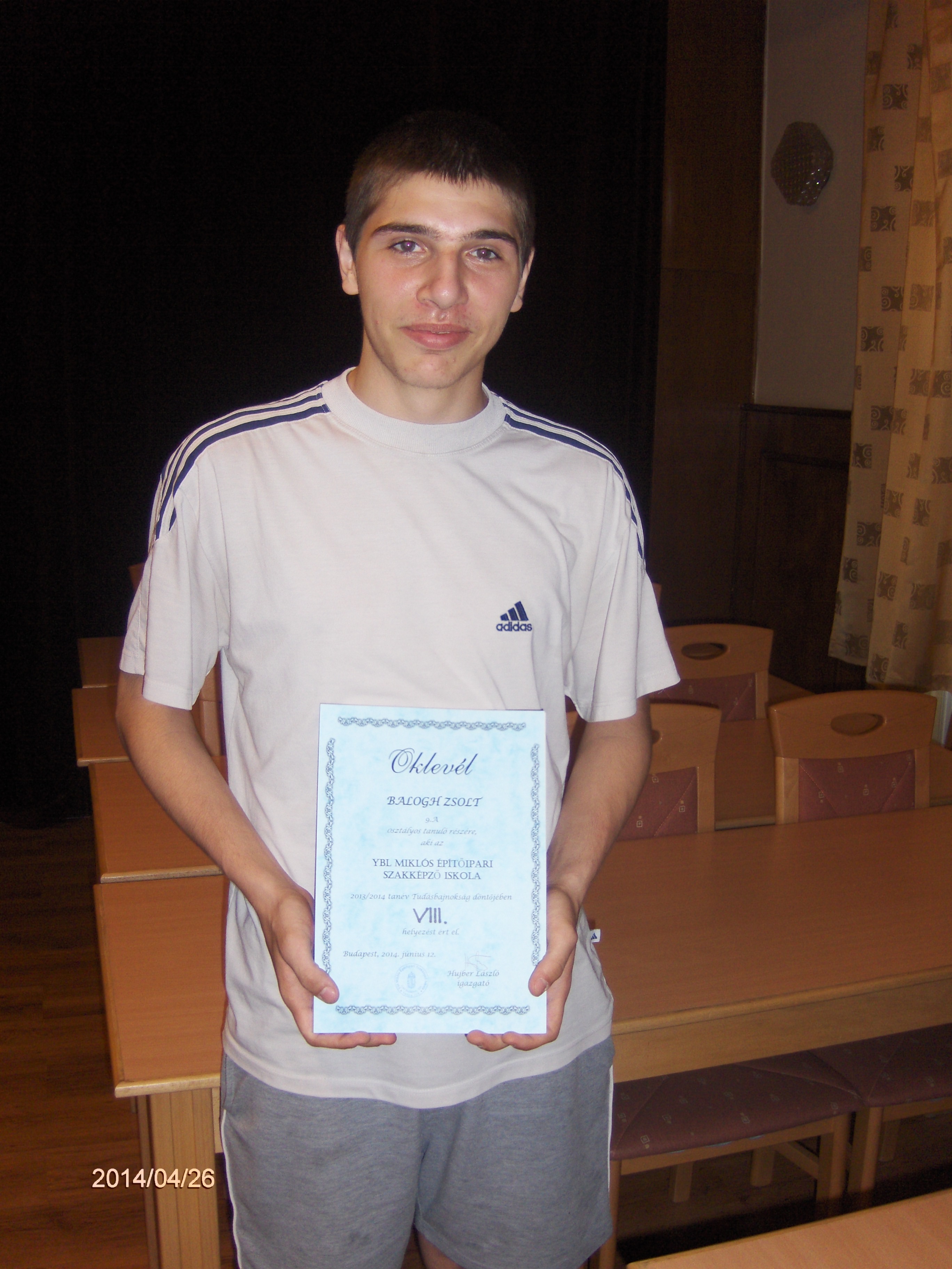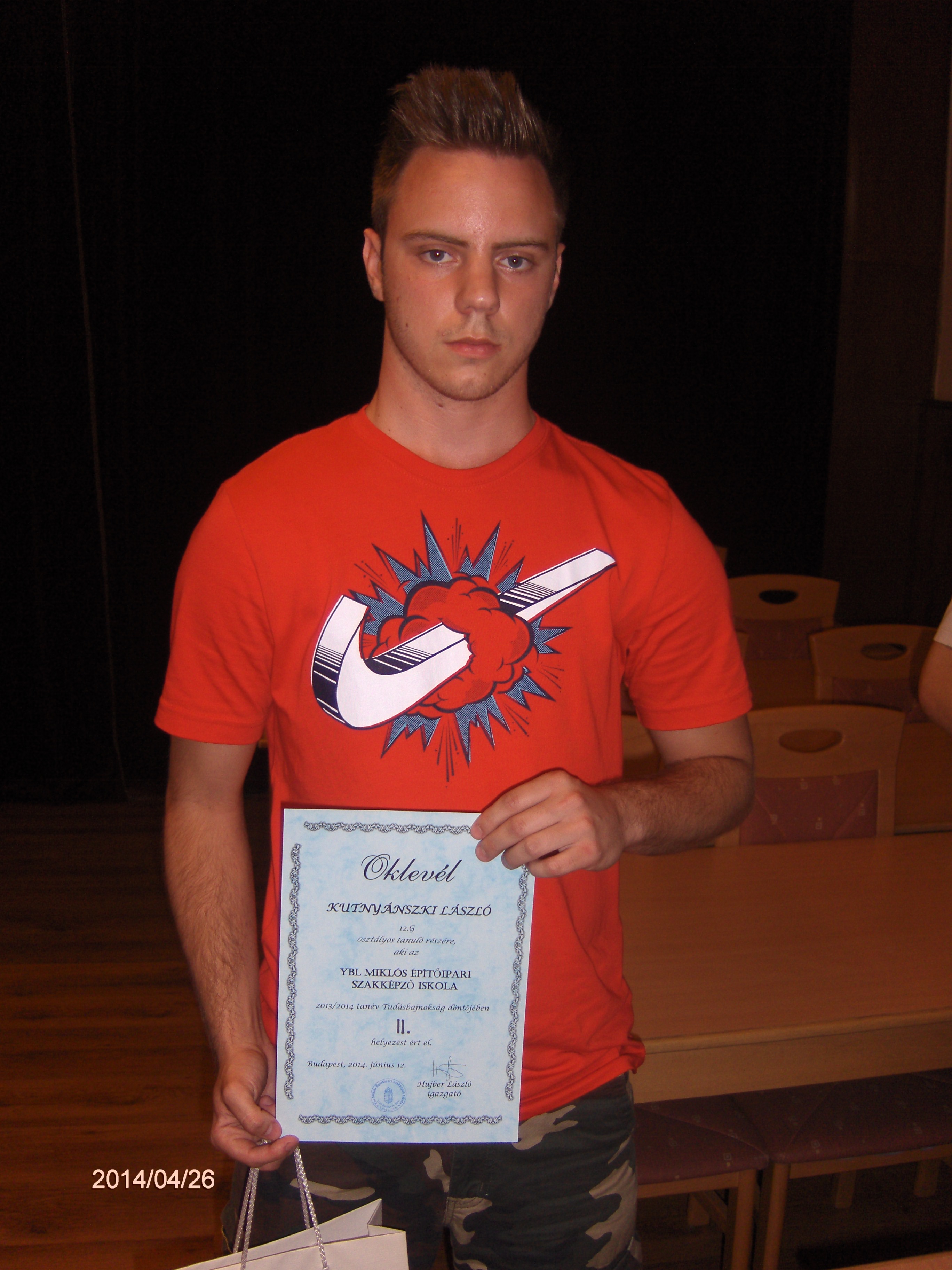 A 2013-2014-es tanév TUDÁSBAJNOKA: PUSZTAI CSABA 11.G osztályos tanuló